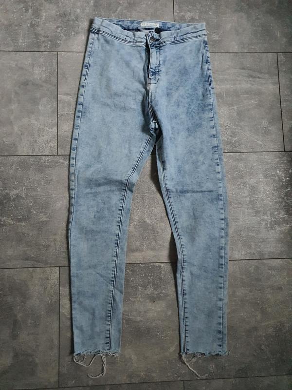 Вареные женские джинсы. На молнии и пуговице. По фигуре. Фасон джеггинсы. С врезными карманами спереди и накладными сзади. Высокая посадка. Средней плотности. Хорошо тянутся. Замеры: Длина изделия 88 см. Высота посадки 25 см. ПОТ 33 см. ПОБ 40 см. ПО штанины внизу 11 см. Состав: бирка с составом срезана. Оплата на карту приват банка и доставка новой почтой.