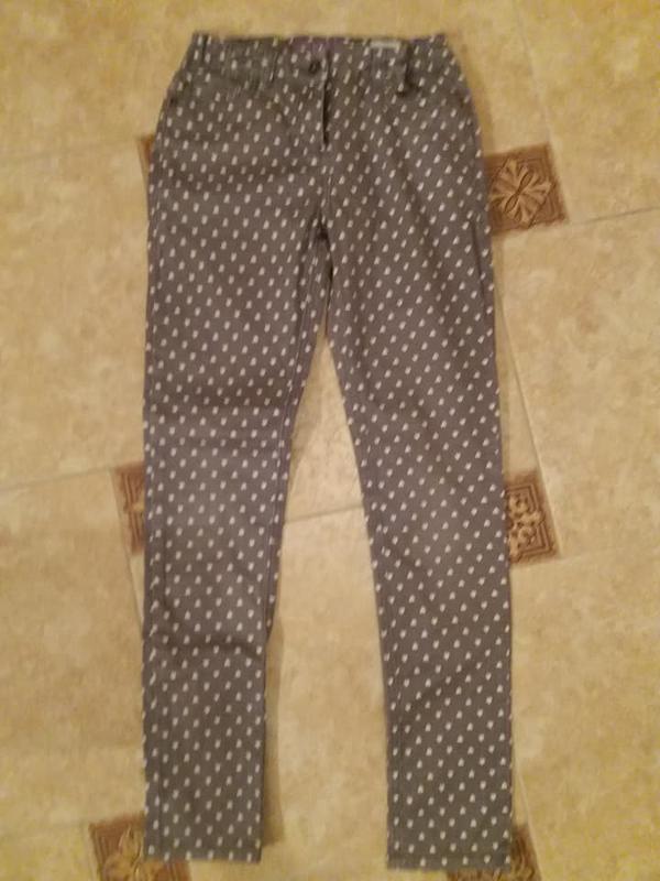 Новые джинсы в сердечках. Размер указан L24. Полуобхват пояса 31 см. Есть утяжка. Полуобхват бедер 39 см. Длина внешнего шва брюк 88 см. Внутреннего шва 67 см.