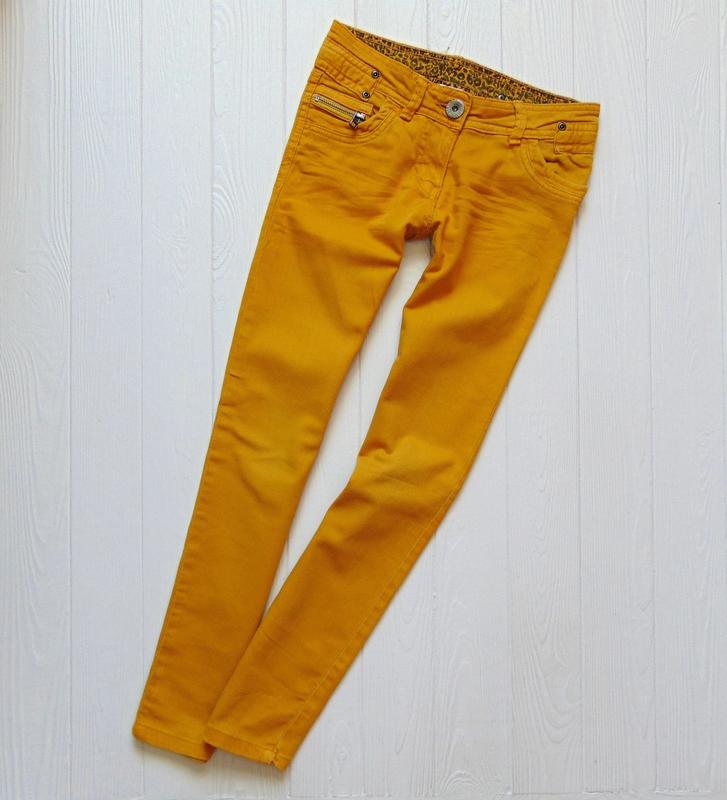 Яркие джинсы для девочки. Мягкий и приятный к телу материал, тянется. Шикарное качество. C&A. Размер 10 лет, рост 140 см. Состояние: отличное. Состав: 98% хлопок, 2% эластан. Замеры: длина 83 см, шаговый шов 64 см, талия 32Х2 см, тянется до 35Х2 см, бёдра 36Х2 см, ширина штанины в районе промежности 20 см, ширина штанины внизу 13 см, глубина посадки 19.5-24.5 см. Материал тянется. Цена 150 грн.