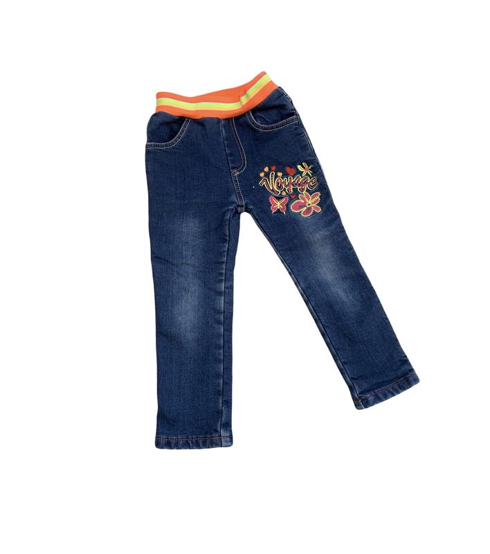Джинсы на флисе зимние, для девочки 3 лет. Пояс на резинке- 20 см; длина-53 см.