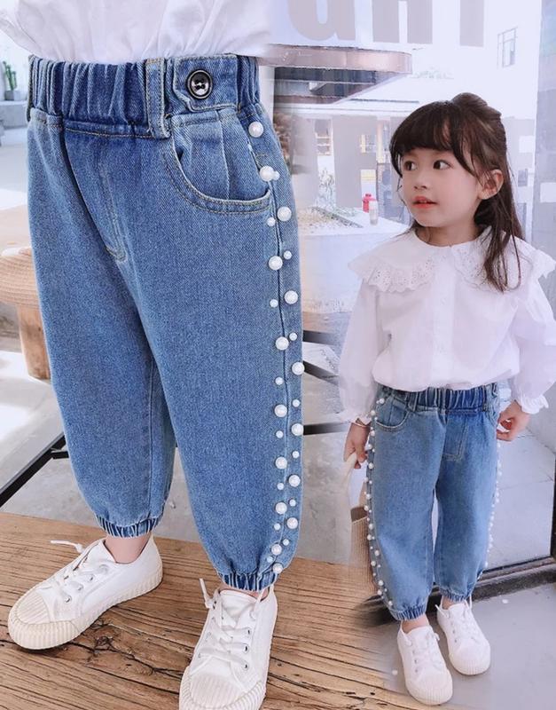 наявності💝 ✨Стильні джинси пояс та них на резинці,кишені з обох сторін,бусинки припаяні,не відпадуть Харченко ♦️ шт 💌90 (7)-довжина 57 см,крок 36 см 💌100 (9)-довжина 62 см,крок 40 см 💌110 (11)-довжина 65 см,крок 41 см 💌120 (13)-довжина 68 см,крок 44 см 💌130 (15)-довжина 70 см,крок 48 см