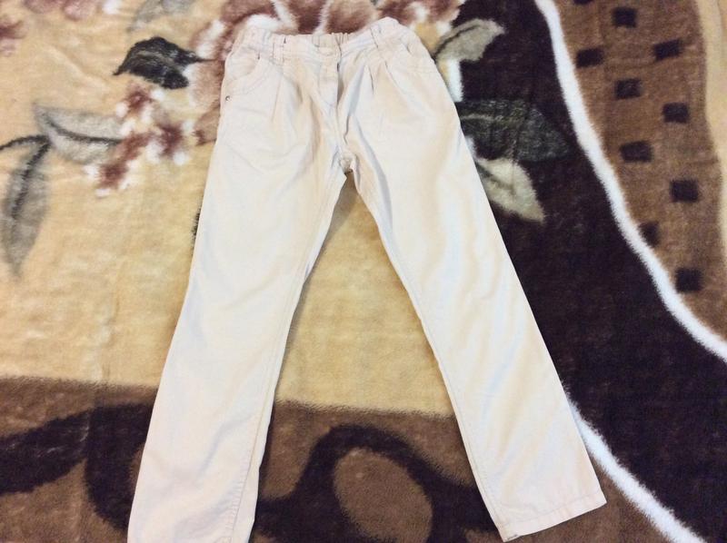 Брючки светло-бежевые,100%котон,в очень хорошем состоянии,пишут на 7-8 лет{128р},но они идут на 5-7 лет,регулируются резинкой в поясе,длина-72см,пошаговый шов-56см,ширина пояса-30см