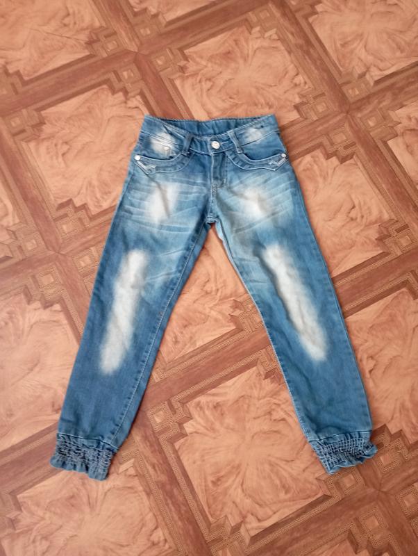 Предлагаю качественные джинсы для девочки потертые. Снизу возле косточки на ноге резинка. Фирма Ciire. Рост 128 см. Состав 95 % котон, 5 % еластан. Есть два наружных кармана спереди и два сзади. Состояние новых. Замеры: длина - 72 см, ПОТ - 30 - 32 см, ПОБ - 34 см, шаговый шов - 55 см. Катон плотненький. О покупке не пожалеете. Задавайте все интересующие вопросы всем с удовольствием отвечу