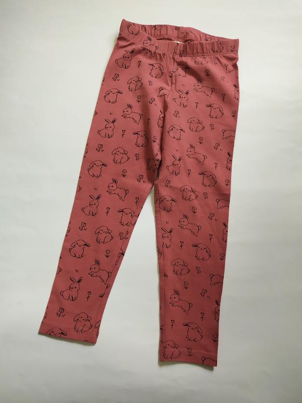 Лосини для дівчинки теракотові в принт зайчиків h&m р.68, 74, 80, 86, 92, 98см