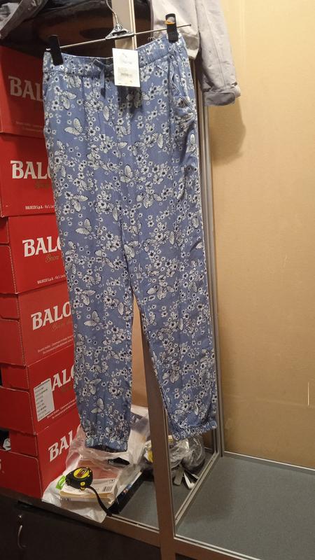 Штаны бренда H&M сиреневого цвета с цветочным принтом в белых тонах, невероятно удобные. Изготовлено из 100 % хлопка. Брюки с поясом на резинке, благодаря которому они отлично сидят на любой фигуре, и бантом с контрастными элементами. Они станут совершенно незаменимы для сна и отдыха дома.