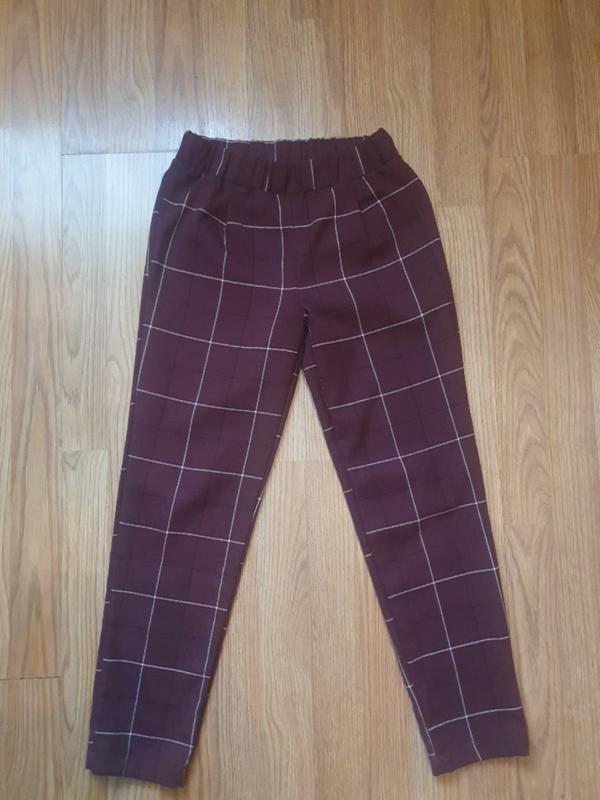бордові,в клітинку,завужені до низу,на резинці