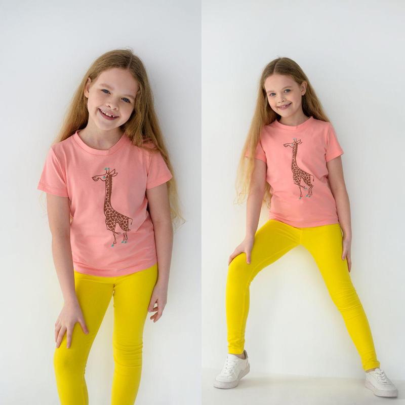 Мод. 1510 *Kids* Футболка "Жираф" Цена 265 грн 116, 122, 128, 134, 140 см Цвет: красный, чёрный, бежевый, жёлтый, белый, бледно-розовый, ярко-розовый. Материал: турецкий кулир, (хлопок 80%, лайкра 20%). Хорошо тянется. Мод. 1511 *Kids* Лосинчики Цена 265 грн 116, 122, 128, 134, 140 см Цвет: красный, чёрный, жёлтый, белый, серый, пудра, шоколад. Материал: турецкий кулир (хлопок 80%, лайкра 20%). В поясе резинка шириной 3см. Растяжение пояса и бёдер на каждый размер +8... +12 см.