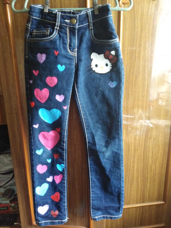 Продам джинсы в отличном состоянии на рост 134 см. Таких джинсов больше нет, они идут в одном экземпляре. Это авторская работа. Замеры спрашивайте.