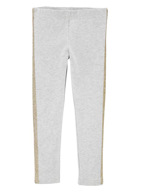 Лосіни від американського виробника Приємний бежевий колір з вставкою з блискучої полоски збоку. Виглядають святково за рахунок золотої поломки Приємні на дотик