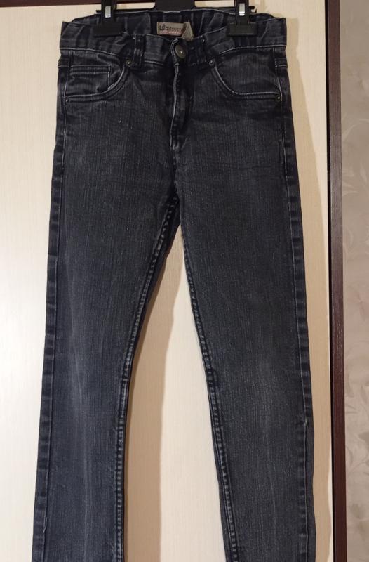 Джинсы темно-серые дудочки, на рост 146 см. На поясе резинки- затяжки.