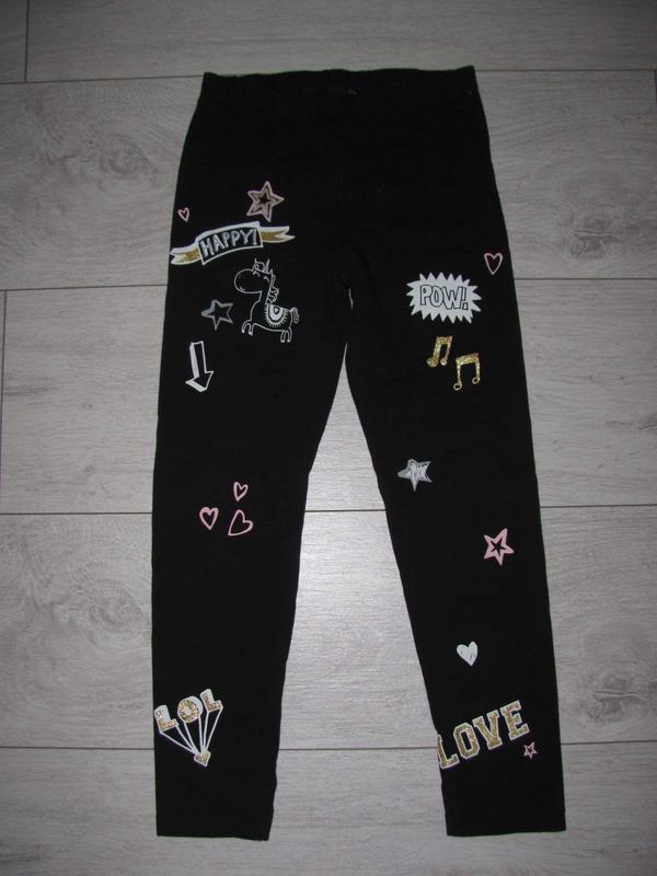 Идеальное состояние! Классные Модные Лосинки для Девочки тм «Nutmeg» р.7-8л./122-128см. Пояс 24.5см./ довжина 65,5см./ шаговий 48см. Цвет Чёрный/Золото. Оригинал. Англия.