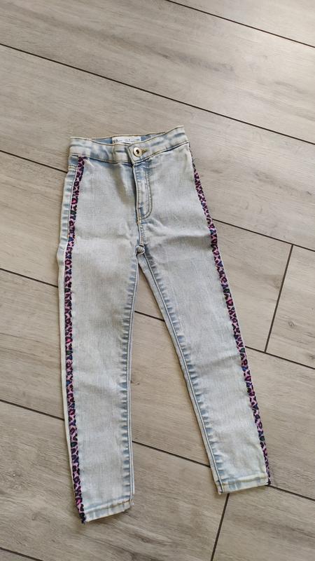 Джинси на дівчинку від Зара. Талія завищена, дуже стильні. Носили акуратно, тому як нові. ПОТ - 20 ПОБ- 25 Довжина- 59,5 Шагов - 39