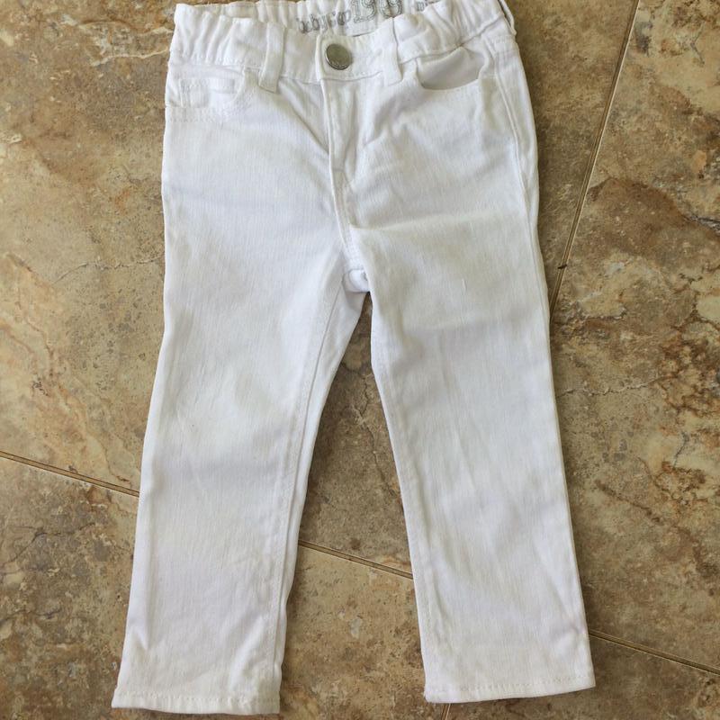 Белые джинсы фирмы GAP, на 18-24 мес. Рост 84-92 см. Состояние идеальное. К брючкам есть бодик этой же фирмы. Джинсы стрейчевый, резинка на талии регулируется.