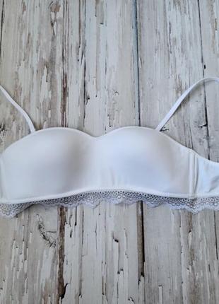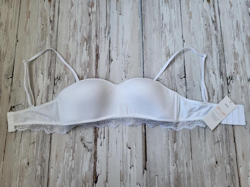 Бюстгальтер Marks and Spencer (Англия) для подростка. Размер 34А (75А) Материл коттон, на формованной чашке. Без пуш-ап. Брылевые земные. Бумажная бирка была на тремпели, который сломался. Поэтому она есть, но к лифу никак не крепится.