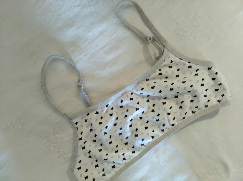Без дырочек и пятен. Вещь тщательно выстирана, но мог остаться запах секонда. На бретельке кашлатинки.