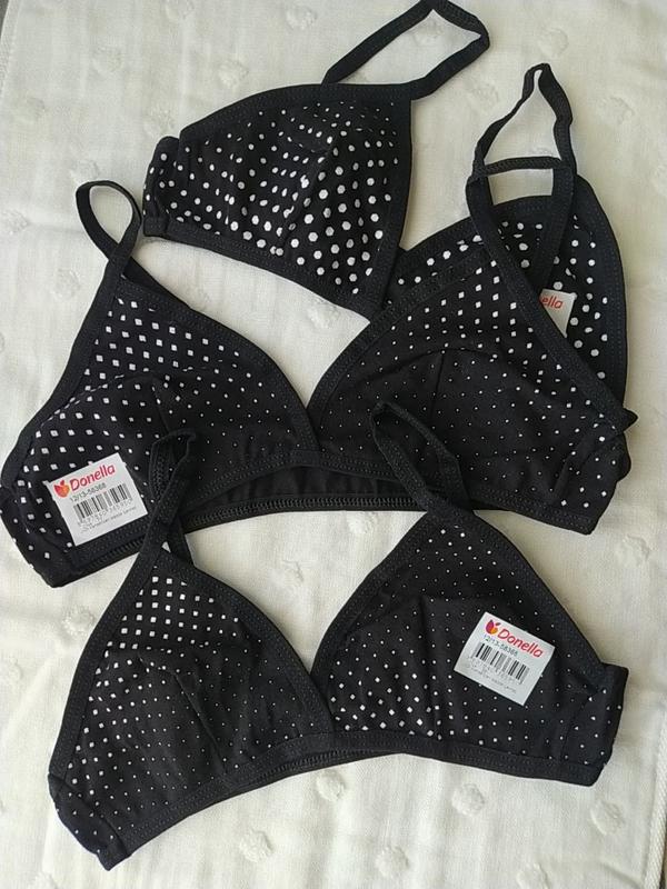 Хлопковые бюстгалтеры для девочек. Одинарный трикотаж, без вставок и без застежки. Склад: 95% бавовна, 5% еластан. Размеры: 152/158 (12/13); 164/170 (14/15) В наличии также есть однотонные белые, черные и серые, а также топы и комплекты.