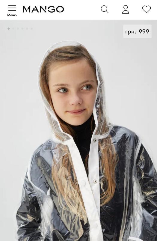 Непромокальна тканина. Прозорий матеріал. Довгі рукава. Капюшон. Спереду дві накладні кишені. Спереду застібка на гудзики.