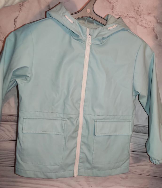 Ветровка, дождевик на девочку , нежно бнрюзового цвета,вверх изделия прорезиненный, качественный подклад, с капюшоном, на змейке, 2 карманах. В хорошем состоянии, дефектов нет, только на спине было 2 маленьких помарочки ручкой, выведено на 99%, в жизни это не заметно, можно довыводить (2 последних фото). Размер 122-128 на 7- 8 лет Замеры: Длина -50 см ПОГ-43 см Талия -41 см Плечи -35 см Рукав-39 см