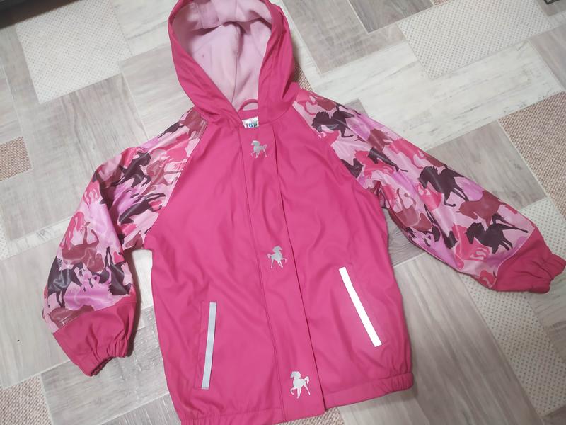цвет розовая малина с светоотражающими элементами .верх пропитка внутри флис на возраст 4-6лет длина 50 в грудь 42 рукав от горловины 49 состояние носили .приличное на вид почта укр и новая