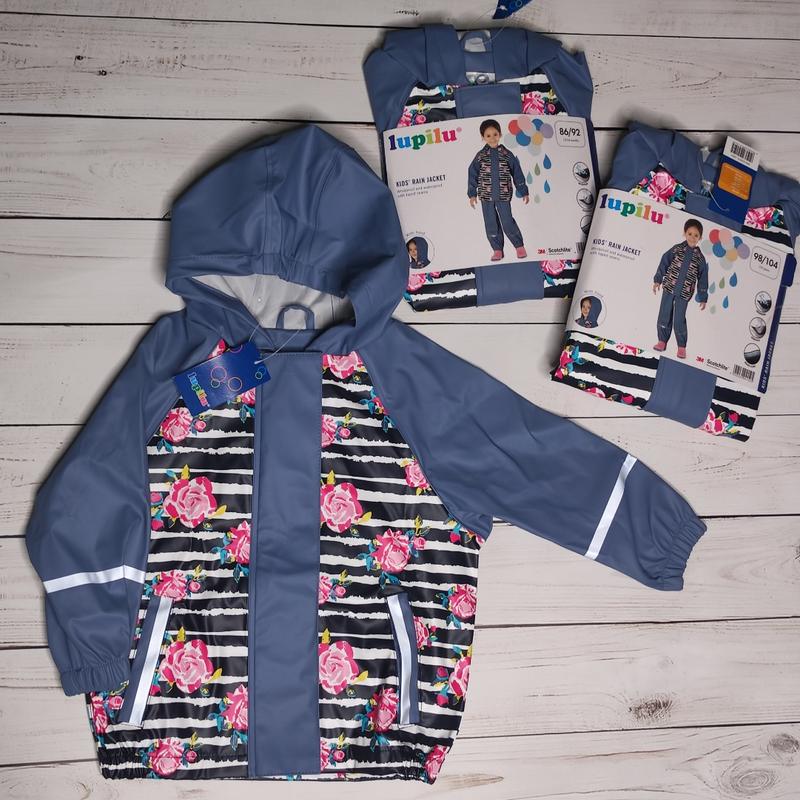 Курточка дождевик от Lupilu, прорезиненная, швы проклеены, есть светоотражающие элементы. Без утеплителя внутри. Замеры сделаны из двух курточка, могут незначительно отличаться в замерах, так как их много. Размерная сетка на последнем фото. ✅86-92 Вся длина - 41 см Рукав от горла - 37 см ПОГ - 38 см ✅98-104 Вся длина - 47 см Рукав от горла - 43 см ПОГ - 41 см Картонная упаковка может быть примята. Открытка Новой или укр по почте. Пишите, отвечая быстро👌