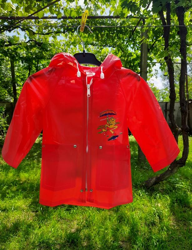 Дождевик удлиненный. Производитель Германия. Клейонка Застегивается на молнию На каждом дождевичке встречаются черные точки или риски, как следы от краски. Они не слишком бросаются в глаза, но есть. Размер указан 98, но подойдет и на 86-92. смотрите замеры: - Ширина под рукавами 33.5 см - длина рукава от горловины 36.5 см - длина рукава от подмышки 20 см - длина дождевика по спине по центру 45 см Открытка по Новой почте 2-3 раза в неделю. Укрпочта раз в неделю.