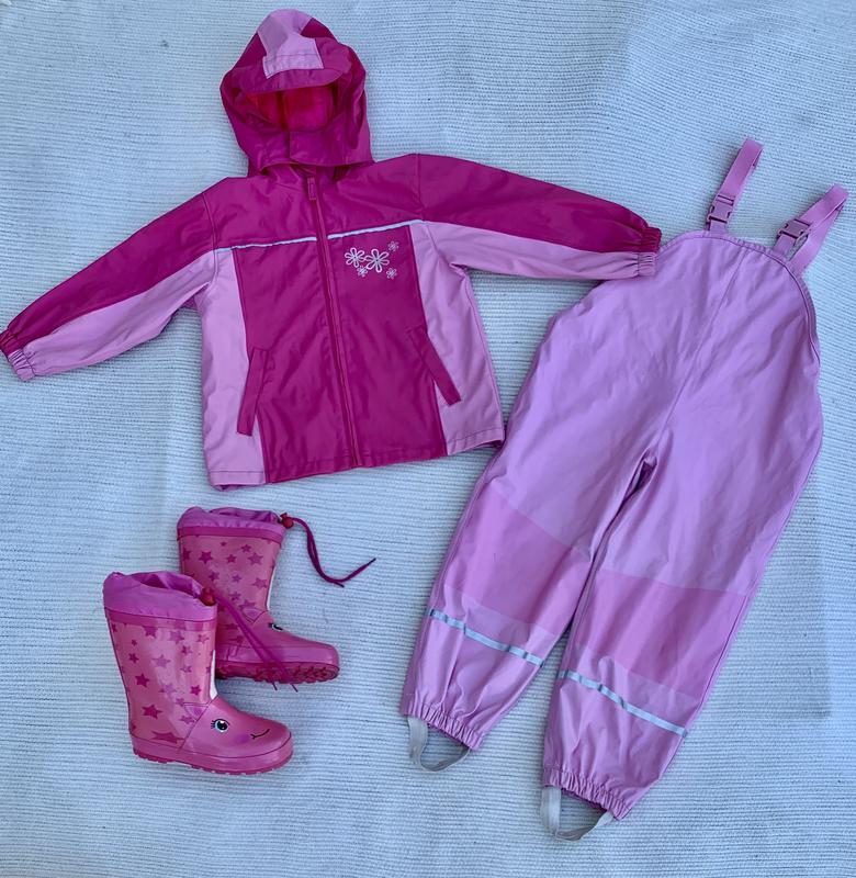 Замечательная курточка -дождевик прорезиненная на нейлоновой подкладке с цветочным принтом. Размер 110 см на 4-6 лет. В идеальном состоянии. Полукомбинезон прорезиненный на флисе Lupilu- уже проданный. Могу предложить похожий в этом размере Сапоги резиновые с единорогами 29 размер - 260 грн. Цена указана только за курточку!