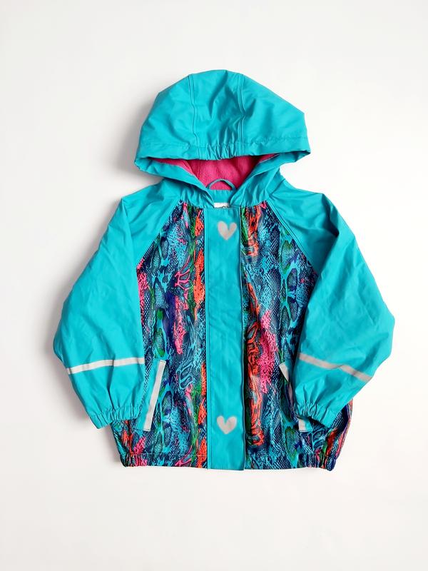 Женский дождевик от фирмы Lupilu на флисовой подкладке на 2-4 года. Яркое березовое, принт абстракция, с светоотражателями.