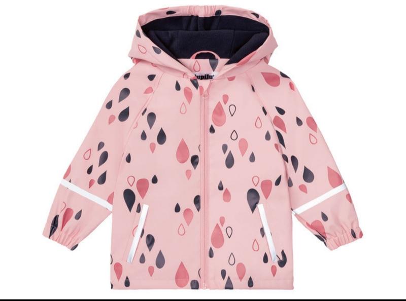 Непромокаемая куртка немецкого бренда Lupilu. Данная модель утеплена флисом. Незаменимая вещь в дождливую погоду. Ребенок будет получать удовольствие от прогулки под дождем, а мама не будет переживать, что ребенок промокнет. К курткам есть штаны. В наличии размер на рост 86/92, 110/116, 122/128см