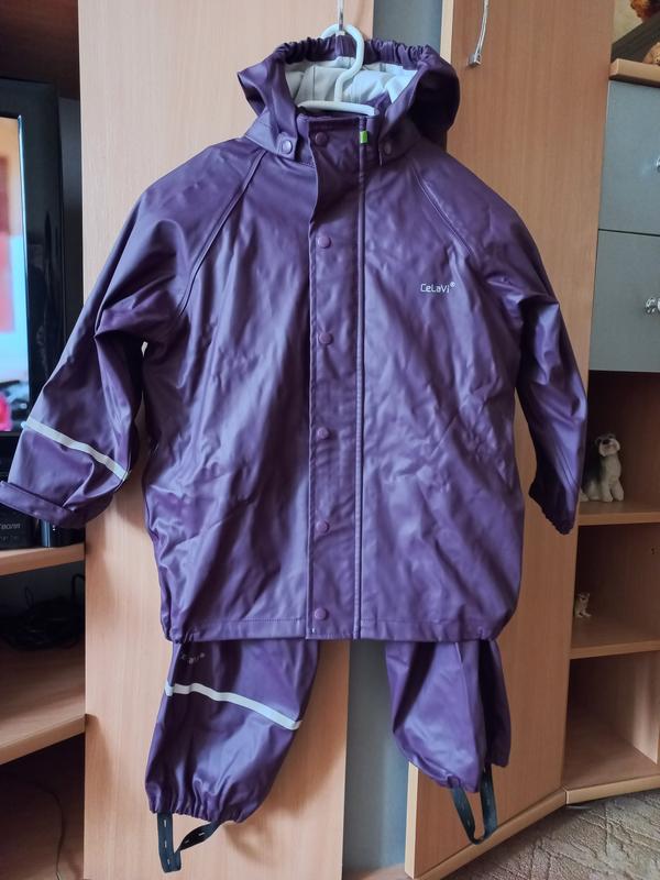 Комбинезон дождевик CeLaVi, демисезон, на девочку. Носить можно в возрасте 6-8..роков. По набору 6 лет, 120 см. Стан великолепен, идеален, на курточке, внизу маленькая белая потертость, в уголке, на фото указано, но она невидима, когда не знаешь). Брюки - состояние новых. Такой комбинезон – это необходимость в каждой семье) на весну-осень! Это была наша любимая одежда на погоду демисезон, на прогулки. Лосины, или колготы, флиска, и все! Он не промокает и не продувается. Внутри специальная ткань. Брюки - длина 79, шаг - 51. Куртка: по спинке - 55, рукав - 50, проймы - 44. Капюшон съемный. Все на резинках, липучках и т.д.. Идеальный, любимый костюмчик!