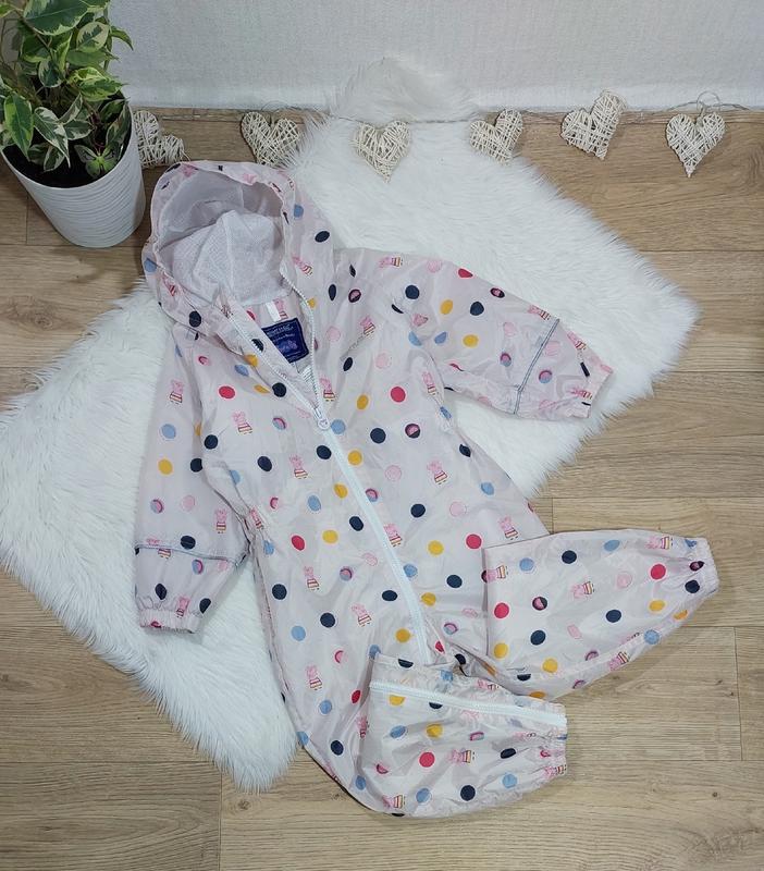 Regatta на 3-4 года (98-104 см), брендовый комбез-дождевик Свинка Пеппа, застежка змейка, снаружи влагостойкая плащевка (полиэстер), подкладка жаккард, без утеплителя, идеальное состояние, (длина 90 см, шаг 38 см, полуобхват 37 см, рукав от горловины 41 см)