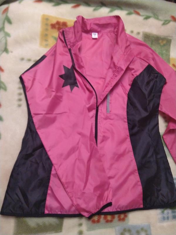 Очень красивая вещь шикарно смотрится, высота -75см, полу обхват груди -65см, длинна рукава от горловины -76см, полу обхват бедер -65см, невстрека не была одета, есть на ветровке вставки светящиеся в темноте.