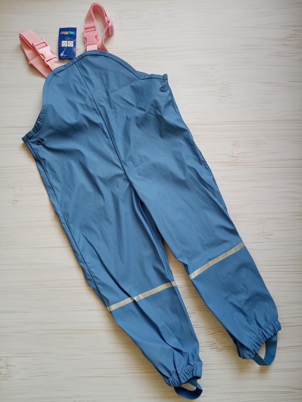 Напівкомбінезон грязепруф без флісу. Розміри в наявності: Блакитний: 122/128. Великомірять. У такому одязі не страшний дощ! Завдяки сучасній екологічній технології BIONIC FINISH ECO грязепруфи мають вітрозахисні, водонепроникні та дихаючі властивості, а також брудовідштовхувальне покриття тканини. Не потребує прання, достатньо протерти вологою губкою. Основні характеристики: - вітро- водонепроникна тканина, грязевідштовхувальна (прогумована, поліуретанове покриття); - герметичні, проклеєні шви; - світловідбиваючі елементи; - бретельки регулюються, ширина також регулюється кнопками.