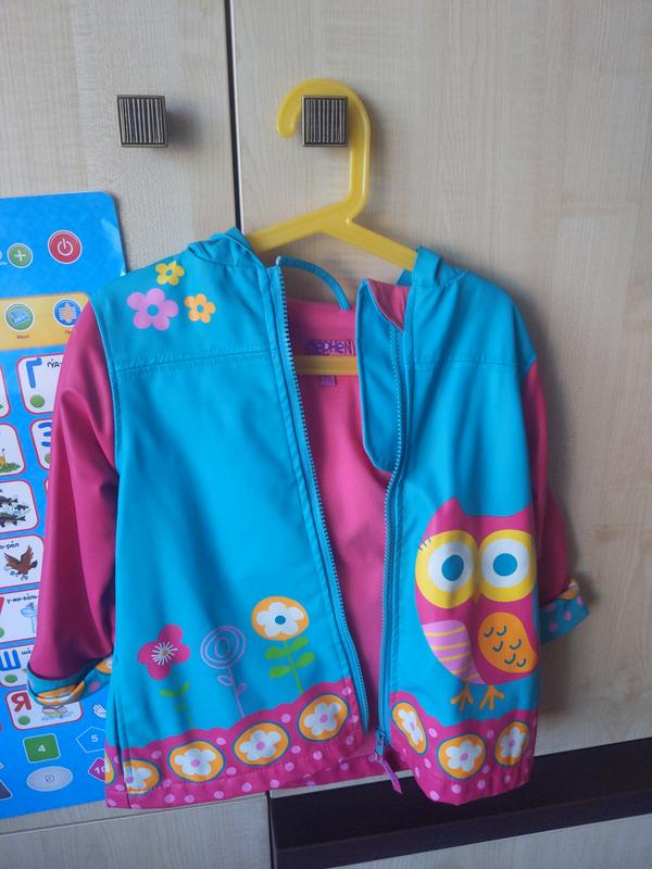 Верх будто прорезиненный, длину рукава можно регулировать, цвет не такой синий, больше цвет до зеленого. Минус это оторвалось петелька, чтобы вешать, но это легко устранить.