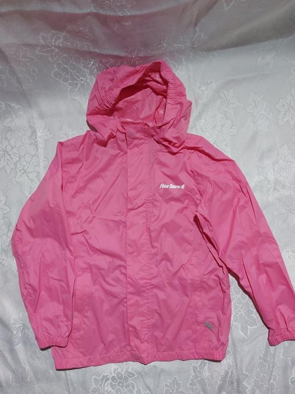 Дуже приємна до тіла, якісна фірмова вітровка для дівчинки, ідеальний стан, можна сказати нова, просиліконена, кишені на замочку, на дівчинку 7-8 рочків, заміри на фото