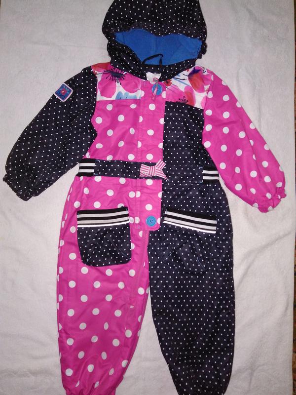Деми комбинезон на 1-2 года р.86-92 Состояние отличное, пятен, зацепок и др.ньюансов нет. Расцветка яркая комбинированная. Утепленный, но не толстый. Теплая флисовая подкладка по всему комбезу, в рукавах подкладочная ткань. Верхняя ткань мягенькая с влагозащитными свойствами. Низ штанин и рукава на резинке, застегивается на молнию + липучки. Замеры полная длина 72см (от плеча до низа, без капюшона) длина от плеча до паха 47м ширина (от подмышки до подмышки) 34см ширина (в поясе) 31см шаг 30см рукав от капюшона 37см