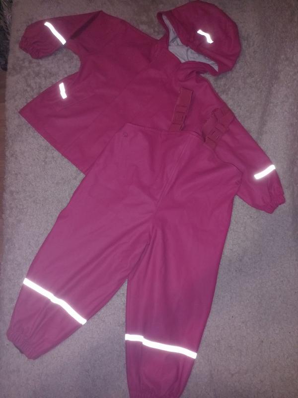 Продам комплект дождевик/полукомбинезон +куртка грязеприф для девочки р.86 Состояние отлично Замеры куртка длина 42см ПОГ 39см рукав 32см полукомбинезон длина 76см+/- вн.шов 35см ПОГ 31/37см