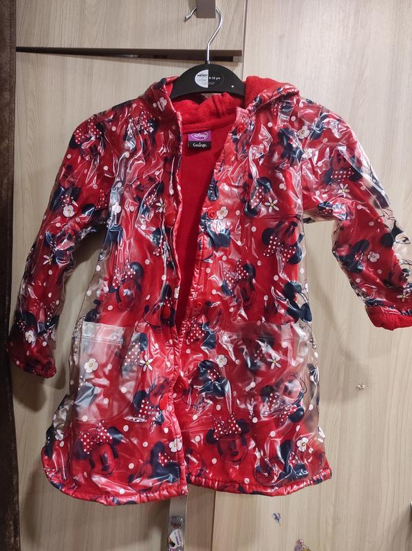 Красивый дождевик, утепленный флисом, имеет копюшон и небольшие карманы, застегивается на кнопки