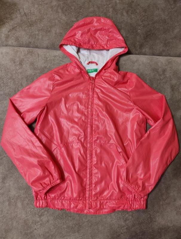 Курточка ветровка. Длина 57см,ширина 46 см, рукав 57 см. Стан как новая на подкладке, яркая. Размер 146+-.