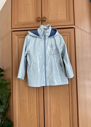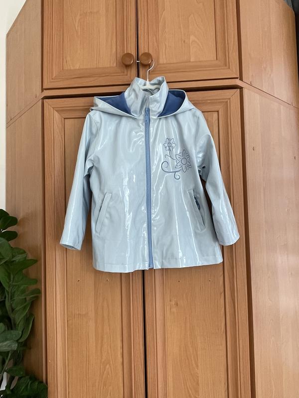 Куртка-дощовик у ідеальному стані! Всередині тепла підкладка. Зовні водонепроникна. Розмір 104. Довжина куртки - 46 см. Довжина рукава - 37 см. На рукавах зсередини теплі манжети. Дві кишені на блискавках. Всі блискавки працюють відмінно.