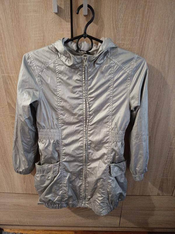 детская курточка ветровка плащ в цвете серебро на размер128-135 8-9 лет.