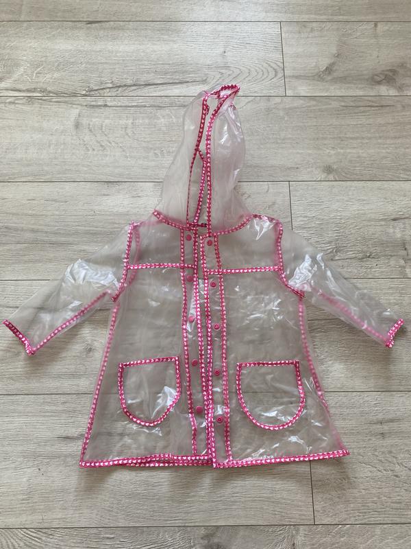 Прозрачный дождевик плащ на кнопочках, возраст 1-2 года, шапочка в подарок Замеры на фото