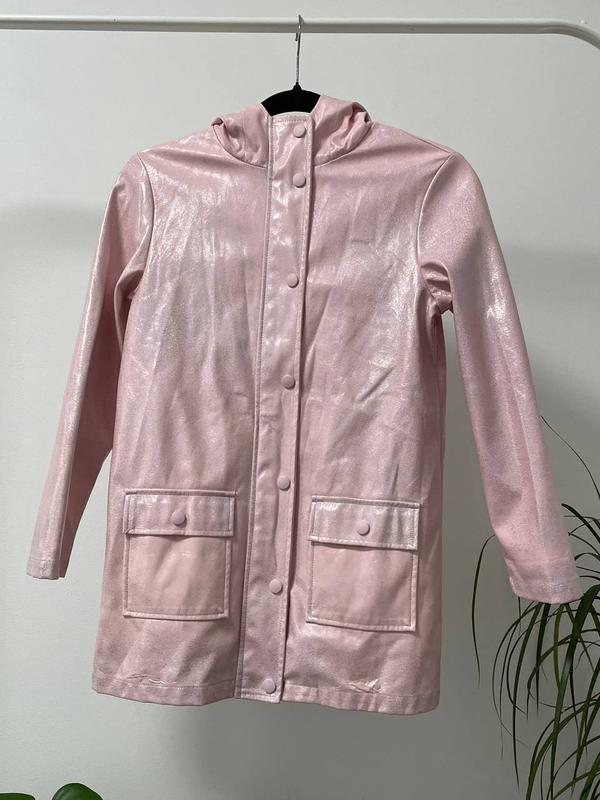 Дитячий плащ дощовик для дівчинки на 11 років світлого рожевого кольору з блискітками невеликий дефект - не вистачає блискіток на кишенях ( на останньому фото)