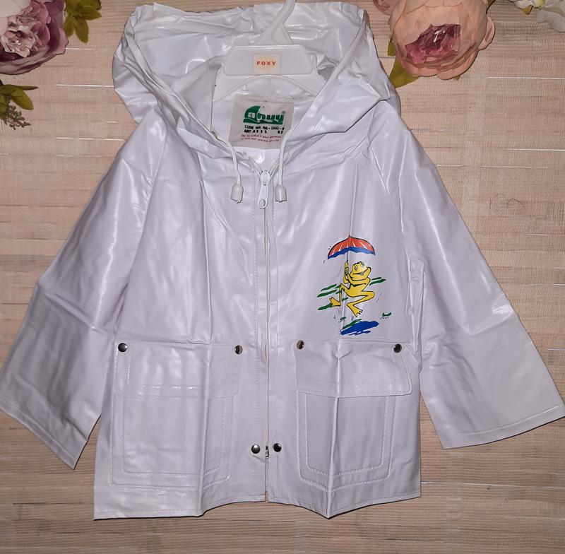Дождевик обыкновенный ( не резина тонкая,а клеёнка). Производства Германии. Так как клеёнка белая,то некоторые могут быть запылёнными; иногда встречается переход цвета от рисунка на белое; некоторые по непонятным причинам имеют желтоватый оттенок. В первую очередь продаю не пожелтевшие. Дождевик практически весь спаян ( швы),кроме низа и вшитой молнии. Есть отверстия для вентиляции под рукавами. Расцветка рисунка может отличаться. Рисунок одинаковый В размерах: 92 98 104 110 116 128 92: ширина в груди 33 длина рукава от шеи 38 длина дождевика 40 98: ширина в груди 36 длина рукава от шеи 38 длина дождевика 43,5 104 : ширина в груди 37,5 длина рукава от шеи 41 длина дождевика 47 110 : ширина в груди 38 длина рукава от шеи 44 см длина дождевика 51 116 : ширина в груди 38 длина рукава от шеи 44 длина дождевика 54 128 : ширина в груди 40,5 длина рукава от шеи 50 длина дождевика 60 Отправлю Новой почтой или Укрпочтой ,Justin по полной оплате .