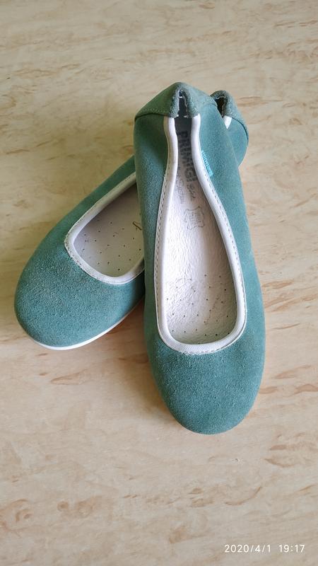 Балеточки м'ятного кольору, повністю шкіра, стел.18-см. Воздушна стелька.