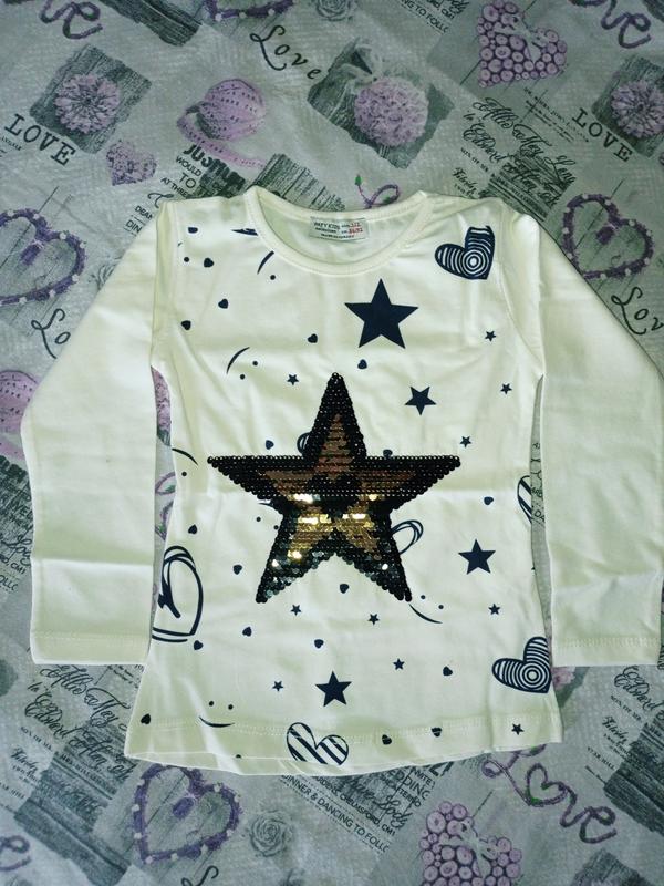 Реглан для девочки с пайетками перевертыши , хорошего качества. пр-во Турция. Состав: хлопок. В наличии два размер: 1-2года(86/92р), 3-4года(98/104р.).