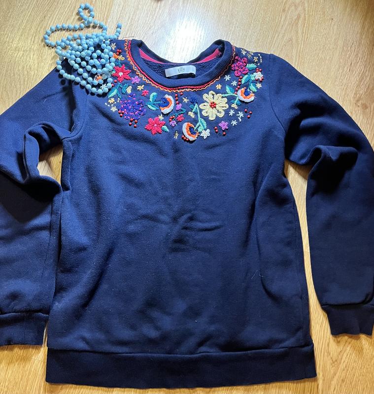 Теплая кофтина с вышивкой. Тепленькая, на байке. Состояние новой вещи. Длина - 52см, ширина - 41см, рукав - 53 см.