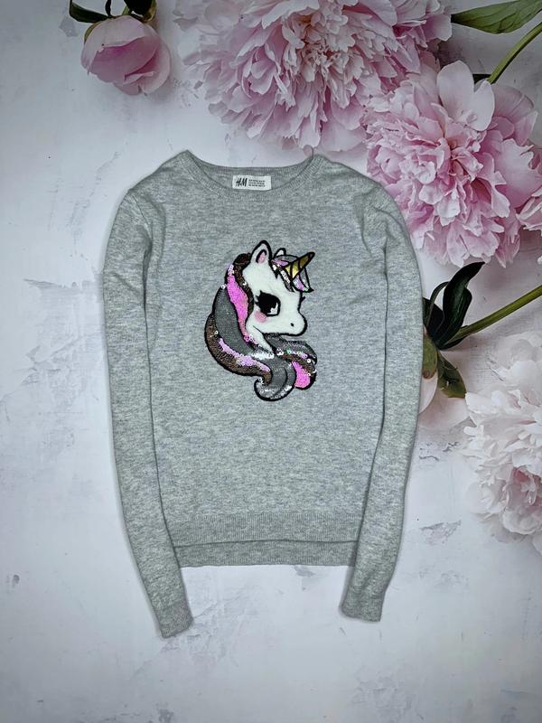 Трикотажный джемпер тонкой вязки Рисунок с интерактивными пайетками Состояние отличное 🏷️H&M 8-10 лет/134-140 Длина 46/50. ПОГ 40. Рукав 52