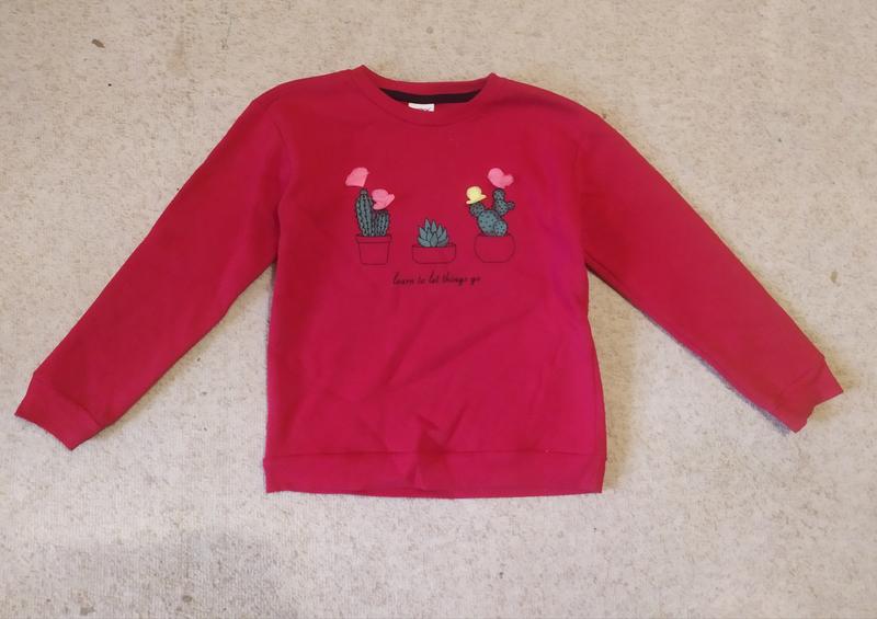 На этикетке написано на 7-8лет, но сядет лучше на 5-6лет Ткань - трехнитка с начёсом. Длина 44см. Длина рукава от плеча 39см Полуобхват груди 35см