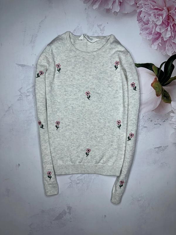 Джемпер тонкой вязки Рисунок вышивка Состояние нового 🏷️H&M 8-10 лет/134-140 Длина 47. ПОГ 36. Рукав 52