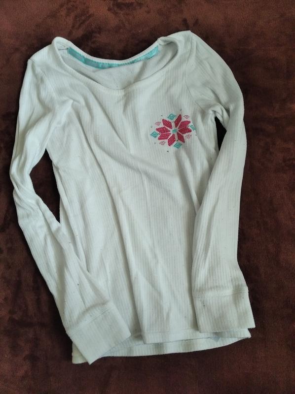 Лонгслив с нашивкой из комбинированных материалов Состав на фото с биркой Цвет белый с очень лёгким оттенком голубого Ткань нужно немного почистить По всем дополнительным вопросам обращайтесь в любое время